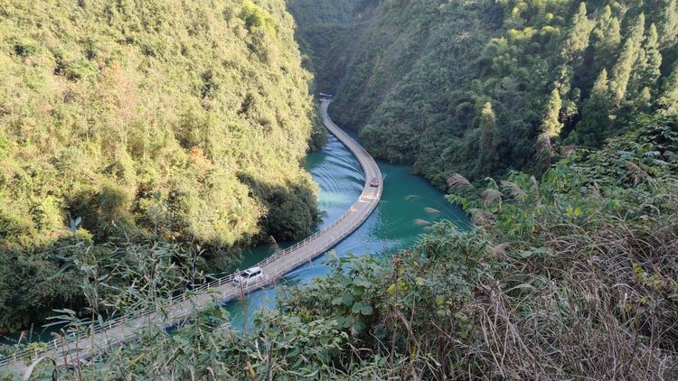 進入景區首先經過的就是獅子關水電站。之后就到了獅子關景區里最有名的景點~“廊橋遺夢”,水上浮橋長度有400米,開車是可以直接上浮橋的,車過去的時候浮橋飄起打得水面形成一道道的水波紋。在浮橋正對的山腰有浮橋觀景臺,站在上面可以俯瞰整個浮橋景觀。過了浮橋往山谷之間開,會看到獅子關漂流道和獅吼瀑布,水流湍急,聲如獅吼。